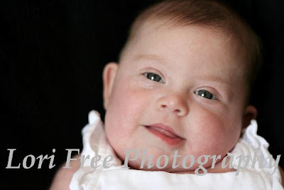 She is now 23 inches and 12 pounds, 5 ounces! Yay! She is a big girl and I think she gets that all from her daddy. That is a good thing! It's funny because the Nurse at the GI doc put her weight on the normal baby chart at her birth age of 6 months. She was right at the 5% mark. That is awesome considering she should only be 4 months, was preemie and has DS! If you go by the fact that she should be 4 months, she falls in between the 10-20% for weight and 5-10% for length. I just find that amazing. Grow Rachel, grow!